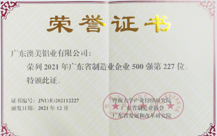 澳美鋁業再次入選 排名躍升至227位
