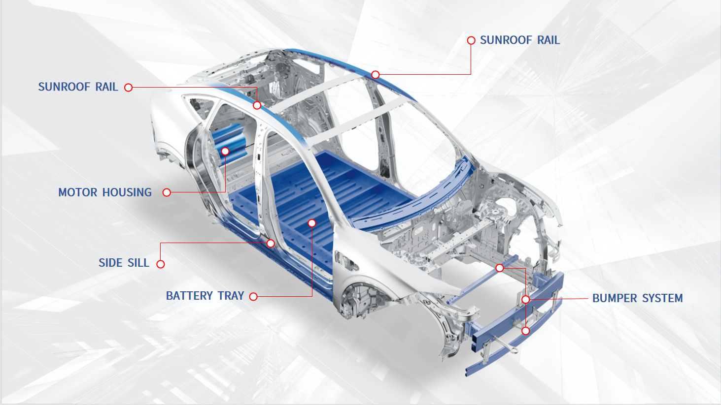 EV(Electrical Vehicle) is one of the trending in future Automotive, with the advantage of aluminum in good thermal- & electricity conductivity, recycle-ability etc, the aluminum alloy has compress the resources wastage which lead to better sustainability application.
